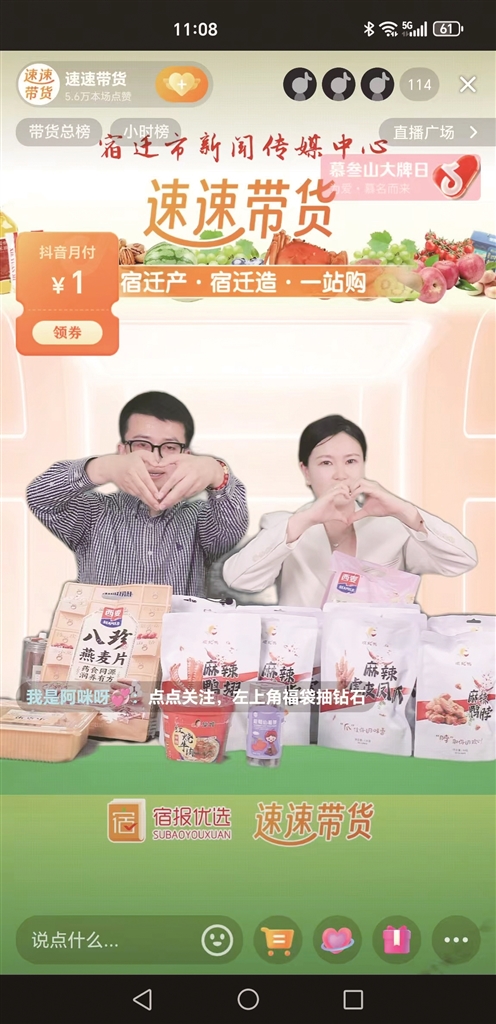 这场以“宿迁产·宿迁造·一站购”为主题的直播首秀,呈现一种别开生面的宿迁地产品销售方式,吸引了众多网友关注和参与。