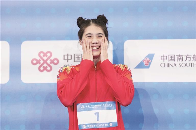 当日,第十五届全国运动会游泳女子50米蝶泳决赛在深圳举行。