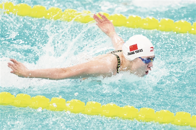 11月16日,江苏队选手张雨霏在比赛中。她最终夺得冠军。