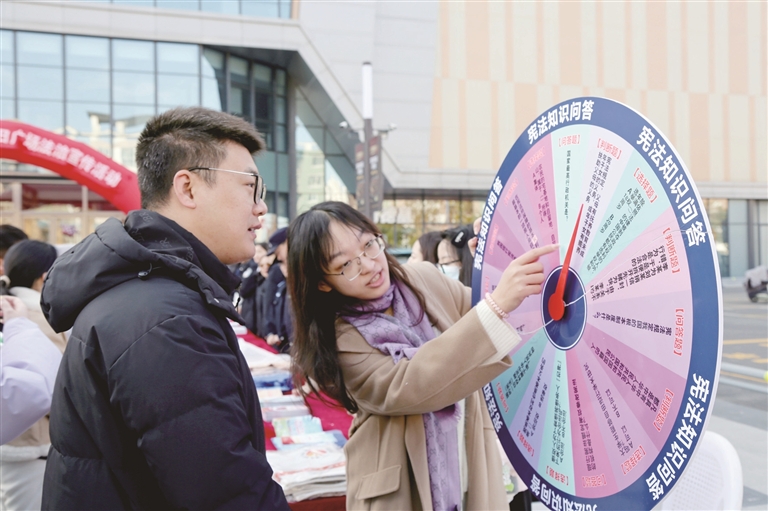 今年12月4日是第十二个国家宪法日。当日,泗洪县在泗州吾悦广场开展广场法治宣传活动,进一步弘扬宪法精神、普及宪法知识。活动通过多种形式推动宪法融入生活,切实增强全社会尊崇宪法、学习宪法、遵守宪法、维护宪法、运用宪法的意识,积极营造浓厚的法治氛围。