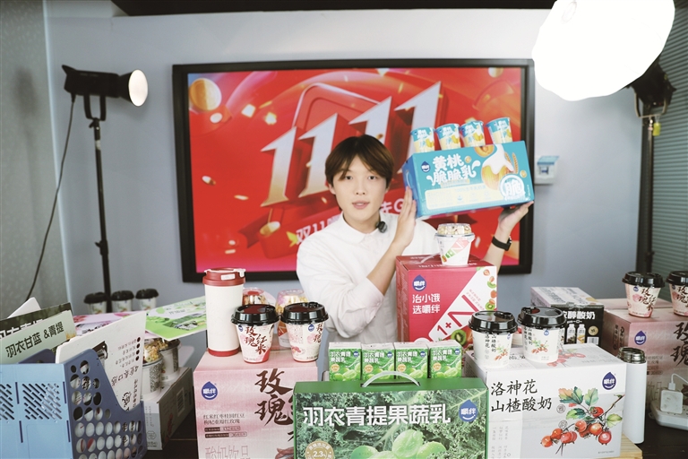 11月5日下午,在宿迁市雅弥优格网络运营有限公司的直播间里,主播正面对镜头,热情地介绍公司新推出的酸奶产品。