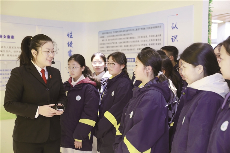 近日,泗洪县人民法院联合泗洪县育才实验学校开展“国家宪法日”主题法治教育活动。54名学生走进法院,通过参观未成年人法治教育基地、旁听寻衅滋事案件庭审、试穿法袍等环节,“零距离”感受司法权威与庄严。